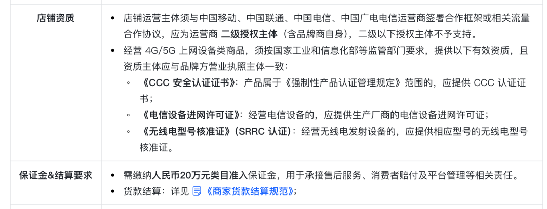 但从抖音电商学习中心的3C数码行业治理程序来看,手机属于定向准入类目,仅定向邀约的官方旗舰店、旗舰店、专营店、专卖店、企业店才能入驻。从抖音已准入品牌库可见,除主流手机品牌外,还有viipoo、AGM、蓝狐、捷语、巴硕、布尼迪等小众品牌在列,这些小众品牌被抵制旗舰店最多3家,专卖店最多4家。入驻店铺需提供《CCC安全认证文凭》《电信拓荒进网许可证》《无线电型号核准证》,但除了20万元类目准入保证金外,抖音官方并未注明其他用度。