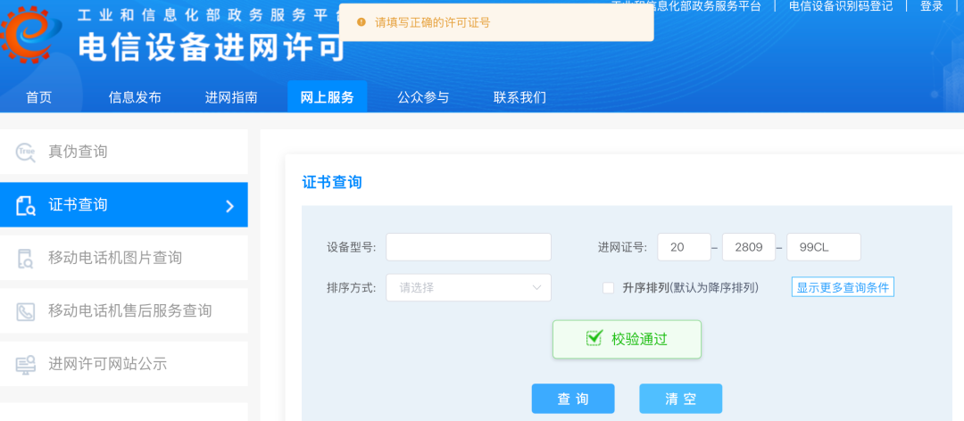 固然每部手机背后齐贴有进网许可,但非论是厂家发来的样机图片,如故投诉消耗者发来的真机图片,《IT时报》记者均未在工业与信息化部电信拓荒进网许可网站上查到,均夸耀“请填写正确的许可证号”,可见这些手机均未通过国度相关部门的检测认证。