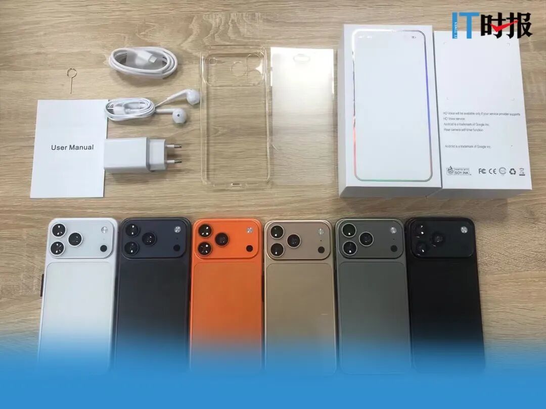 “定制1000起,不作念定制,复旧一件代发。”一家国内厂商发来了报价单,品牌手机、中性手机、智高东说念主表与AI眼镜一应俱全。在卖点一栏,商家会径直挑明“1:1复刻尺寸”“苹果17外不雅”“OPPO X8外不雅“通用壳膜线”等,型号更是径直与大牌手机挂钩,比如W25、P16、70ultra、红鲨M60等。