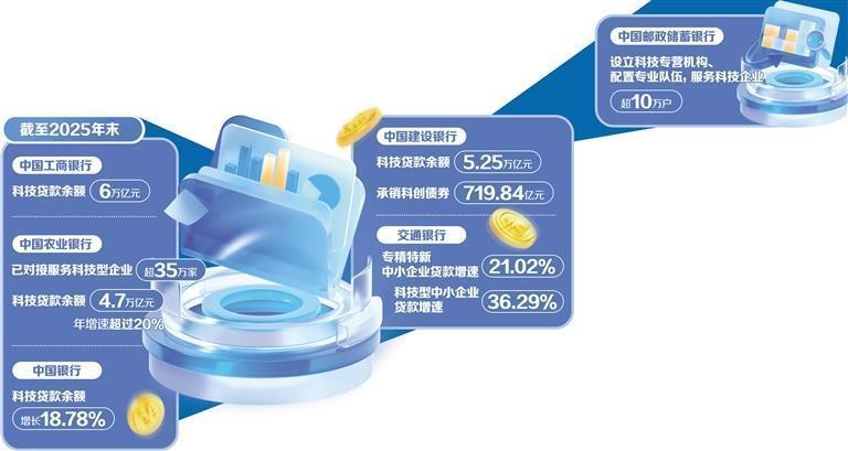 国有大型生意银行阐扬如何?年报骄气,落拓2025年末,中国工商银行的科技贷款余额已达到6万亿元;中国农业银行已对接行状科技型企业超35万家,科技贷款余额4.7万亿元,年增速向上20%;中国银行领先发布撑持东说念主工智能产业链发展行动决策,科技贷款余额增长18.78%;中国建造银行科技贷款余额5.25万亿元,承销科创债券719.84亿元,累计缔造28只金融钞票投资公司(AIC)股权投资试点基金;交通银行专精特新中小企业贷款、科技型中小企业贷款增速分手高达21.02%和36.29%;中国邮政储蓄银行缔造科技专营机构、建树专科队列,行状科技企业超10万户。