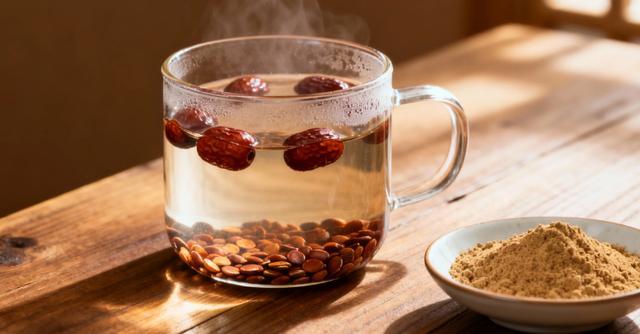 1. 酸枣仁+麦冬茶:取10克酸枣仁,搭配3克麦冬,用开水冲泡,焖泡15分钟后饮用,可反复冲泡至滋味变淡,相宜心烦、口干、就寝不安详的东说念主群,舒徐身心的同期,兼顾滋养保重。